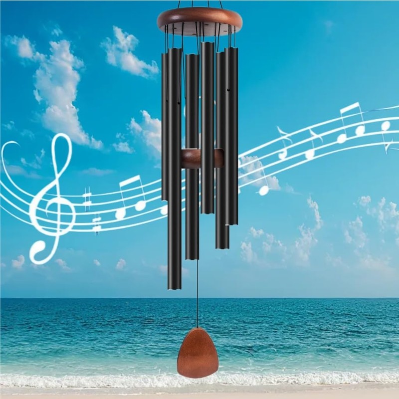 MTSBDM 26" Black Aluminum WindChimes – Soothing Tones, 6 Thick Tubes,Wind Catcher & Hook. Perfect for Garden,Patio,Memorial & Sympathy Gift for Mom,Women,Neighbors.Creates a Zen Atmosphere