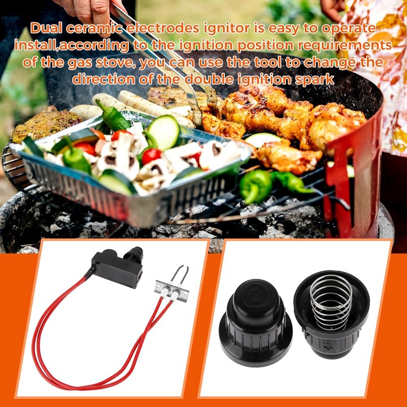 - 【Easy To Install】 Igniter : sparking distance is 2-4 mm, one piece of two outlets igniter and double ignition spark. Caps: remove the old broken spark generator gas cap and screw in the new one