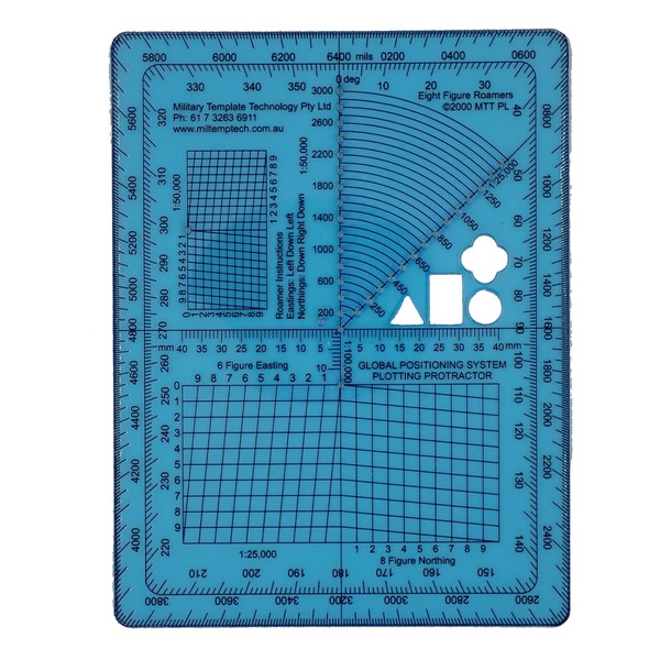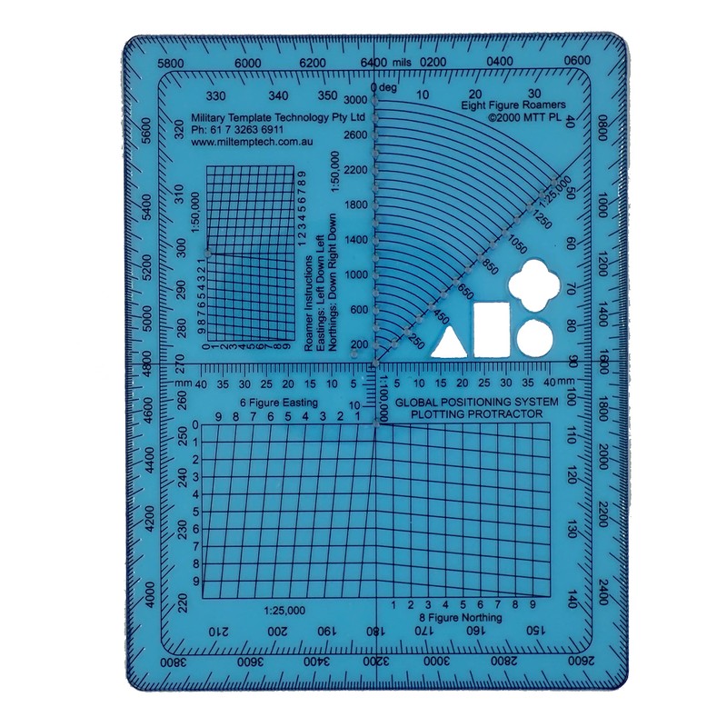 - Versatile Multi-Purpose Tool - Graduated in both Degrees and Mills, and with eight figure map plotters for 1:25,000 and 1:50,000, as well as a six figure plotter for 1:50,000, 1:25,000, and 1:100,000 scale maps.