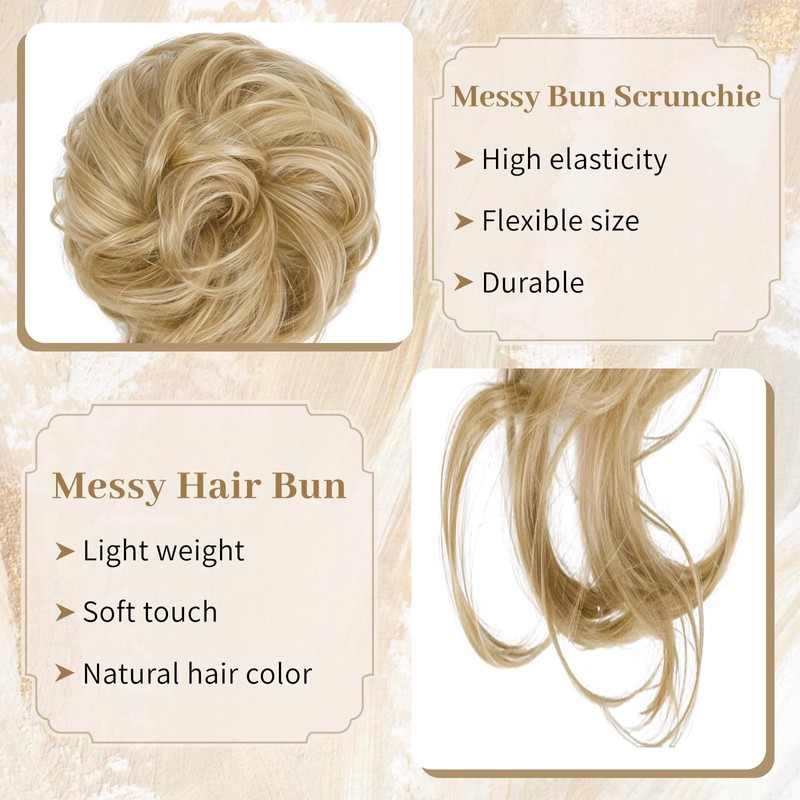 - Easy to wear and dtylen: simply tie your hair into a ponytail or messy bun and wrap the hair band around it to create a playful yet casually chic hairstyle before you go out. Our bun collection looks and feels like your own hair for a comfortable fit. The messy bun gives texture and volume without weighing down your natural hair.