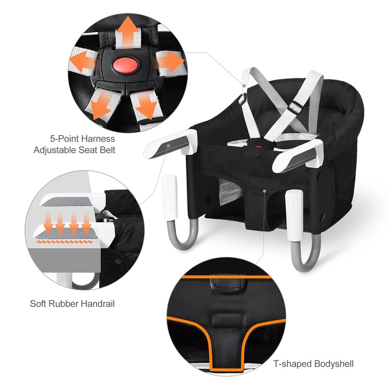 MTWML Portable High Chair for Table,Hook On High Chair That Attaches to Table,Space Saver Clip On Counter High Chair for Baby,Easy Clean Baby Feeding Seat with Carry Bag for Travel(Pure-Black)