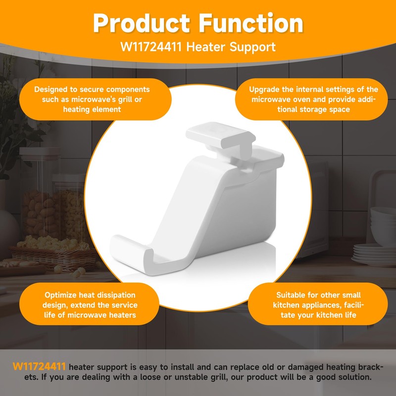 - [Excellent Quality] The grill support W11724411 is made of high-quality ceramic material, which is wear resistant and corrosion resistant. The microwave element support has good thermal stability and can work for a long time under extreme temperatures. Strong bearing capacity to ensure safe use. Using our W11724411 grill support to replace old or damaged heating brackets can help you effectively use the space in the microwave and facilitate your kitchen life