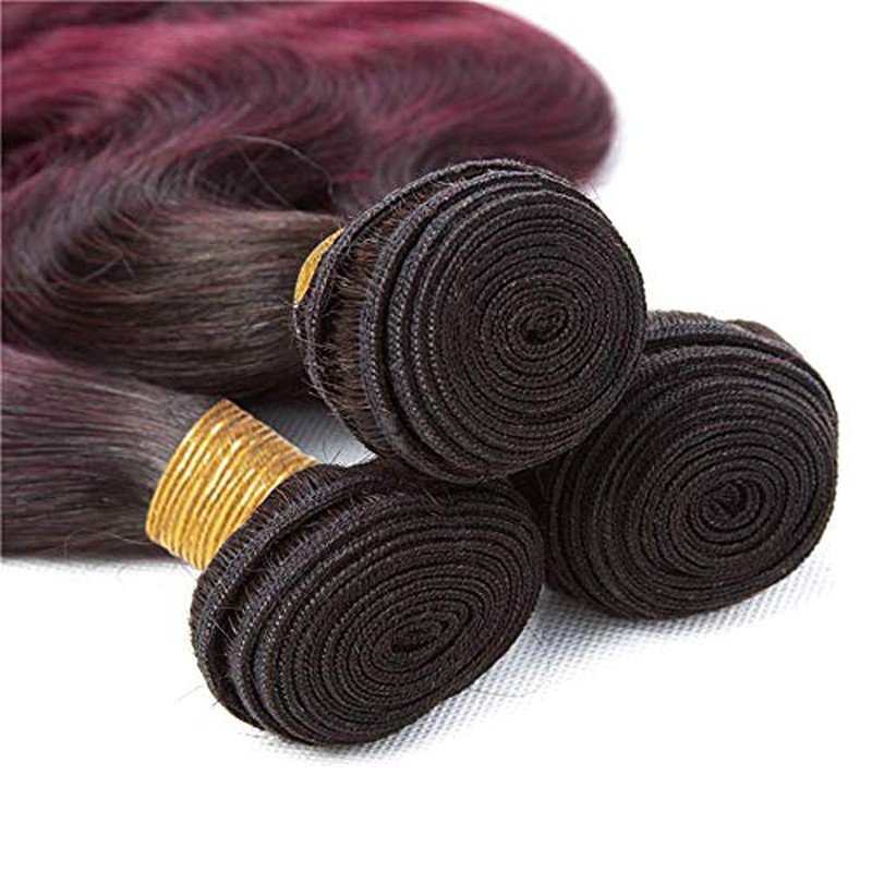 muaowig Burgundy Human Hair Bundles Body Wave Brazilian Remy Hair 3 Bundles Tow Tone #1b/99j Ombre Hair Bundle Red Hair Weave Dark Roots To Red Hair 3 Bundle 8 10 12 inch