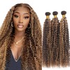 - 【Highlight Bundle Material】:Brazilian Virgin Human Hair,Curly Wave 3 Bundle,P4/27 Brown And Honey Blonde Color.