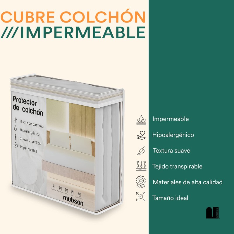 - 🌎【5 Medidas Disponibles】¡Protege tu colchón sin importar la medida! Ya que Mubson trae consigo tu nuevo cobertoren 5 medidas: Individual, Matrimonial, Queen Size, King Size y California King Size.