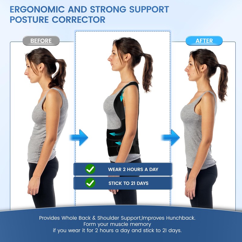 - 【IMPROVE POSTURE】Our back brace posture corrector trains your body to adopt a healthy sitting or standing position. Over time, your body will develop muscle memory and naturally maintain a healthy posture without needing to consciously think about it.