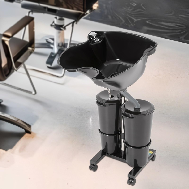 MuChaIOAK Mobile Salon Basin, Barber and Stylist Hair Shampoo Basin, Height Adjustable Washing Sink, Backwash Shampoo Bowl Basin Sink Unit Rolling, 2 Buckets Black
