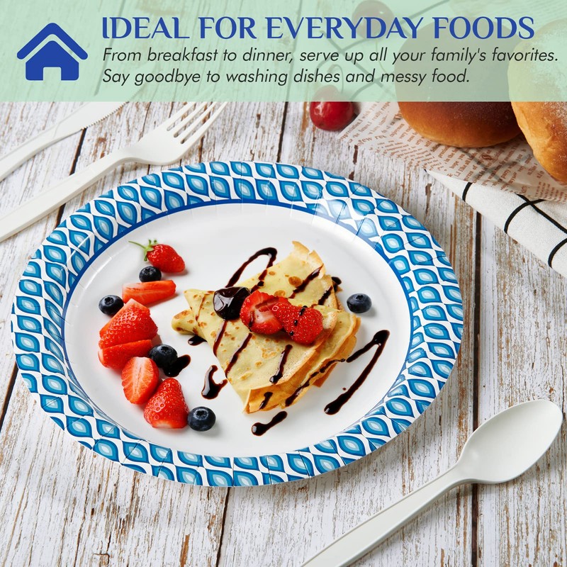 - 【Hassle-Free】Our dinner paper plates are recyclable and can be thrown away after use. You can save time on cleaning up and focus more on fresh food, family, friends and what’s important.