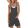 Muchpow Women's V Neck Sleeveless Romper Summer Casual Loose Spaghetti Strap Short Overalls Jumpersuit with Pockets, Dark Grey, Small