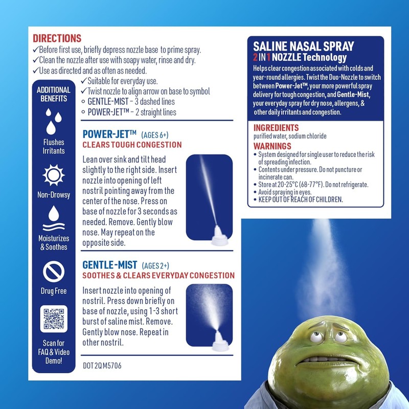 - đź’¦SALINE NASAL SPRAY: Mucinex Sinus Saline Nasal spray is designed to help clear congestion associated with colds & year-round allergies; Our unique 2-in-1 nozzle features a powerful jet for tough congestion & a gentle mist for everyday congestion