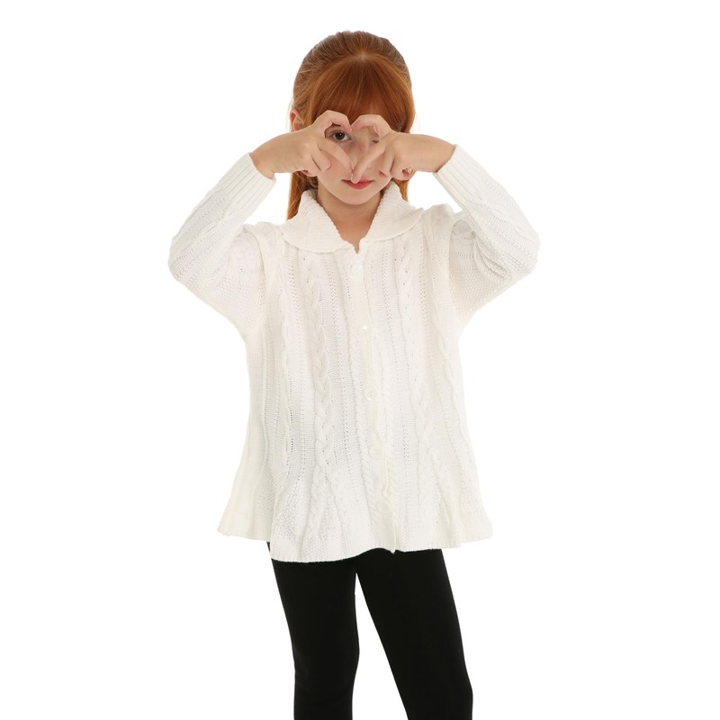 - Timeless Elegance: This charming girls' cable knit cardigan exudes timeless elegance with its color, providing a versatile addition to any honey girls' wardrobe that pairs beautifully with a variety of outfits