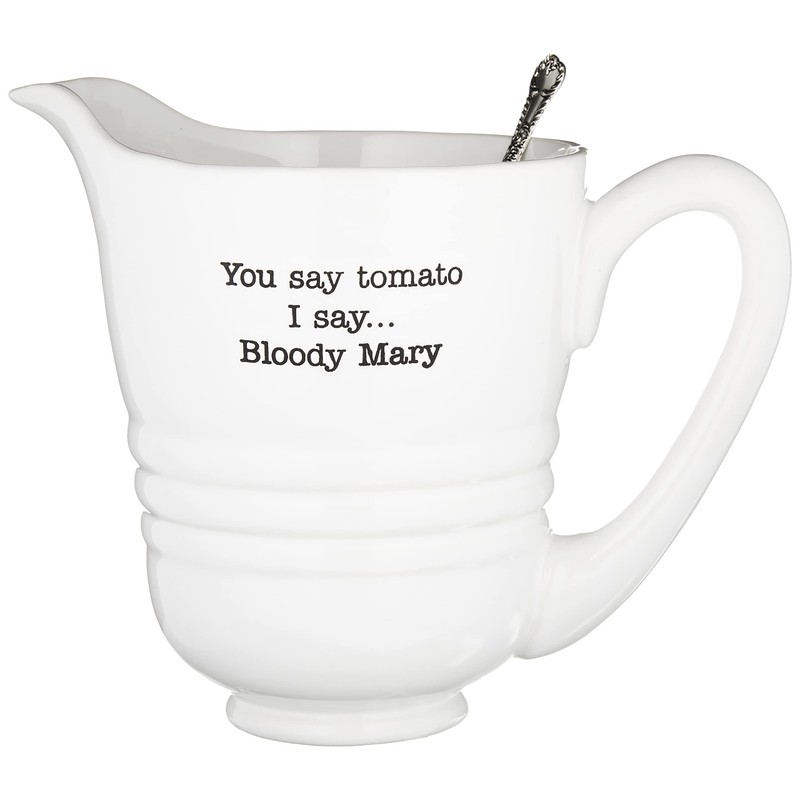 - Ceramic pitcher features "you say tomato I say. Bloody Mary" sentiment