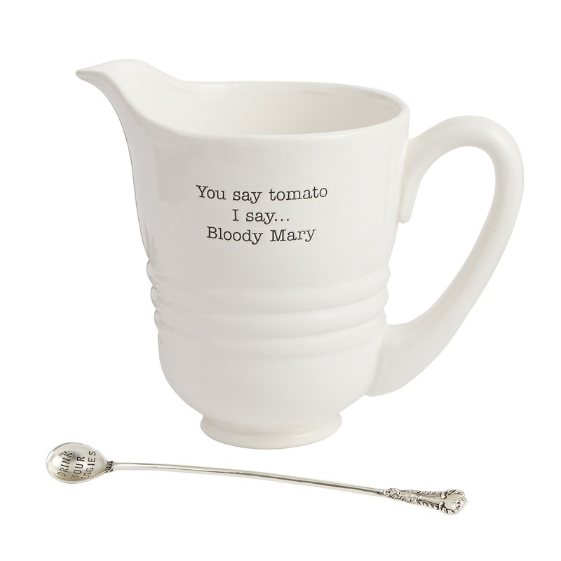 - Ceramic pitcher features "you say tomato I say. Bloody Mary" sentiment