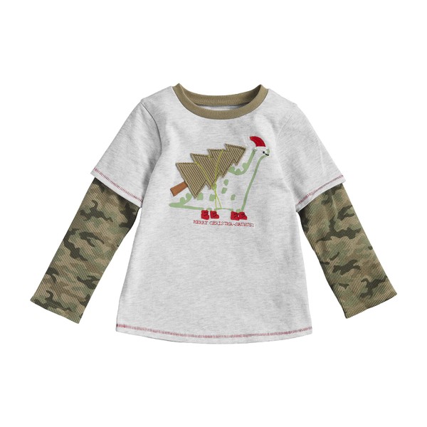 Mud Pie Baby Boys' Dino Camo Christmas Tee, Dinosaur, 12-18 Months