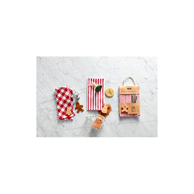 • It's the sweetest season of all with our Christmas Tree Baking Set. The set comes with three pieces. The set includes a cotton hand towel. The towel measures 16 1/2" x 26". The set comes with a terracotta gingerbread sugar saver. The sugar saver measures 2 1/4" x 2 1/2". The set also comes with a cookie cutter. The cookie cutter measures 2 1/2" x 3". Towel can be machine washed on cold with like colors.