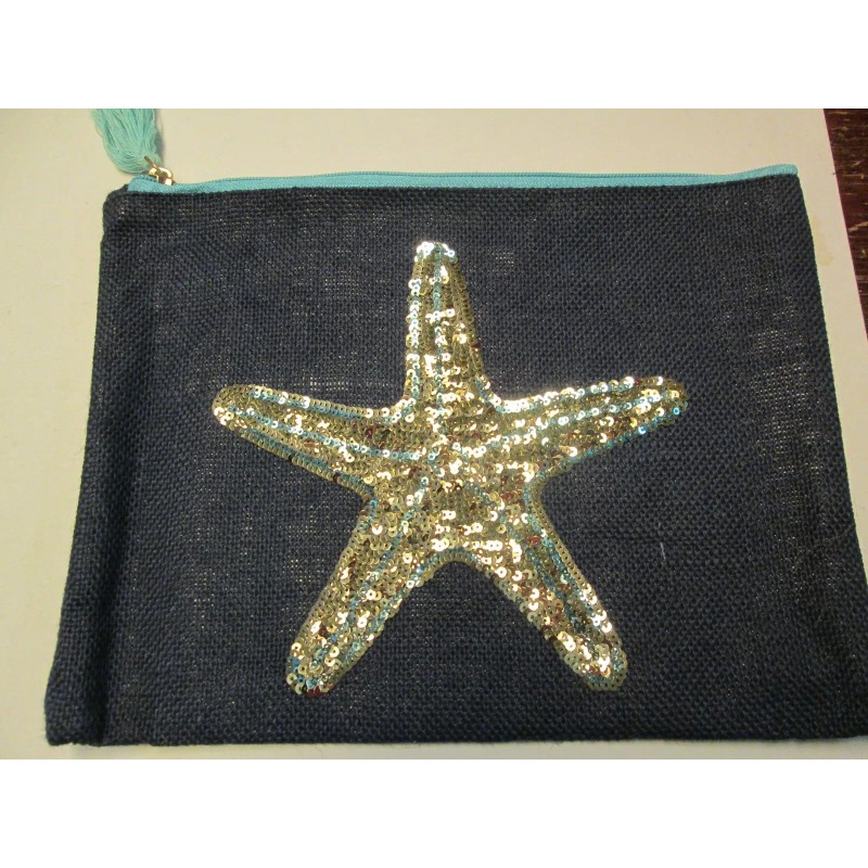 Mud Pie "Beach Life" and Starfish Sequin Design Jute Zip Cases, Set of 2, NWT