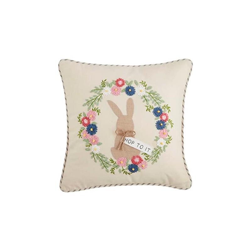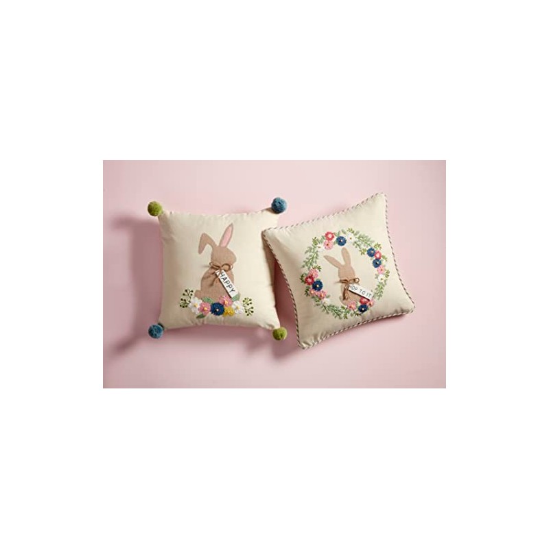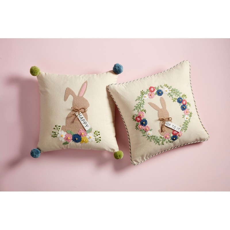 Mud Pie Bunny Embroidered Pillows, 19" x 18", Hop