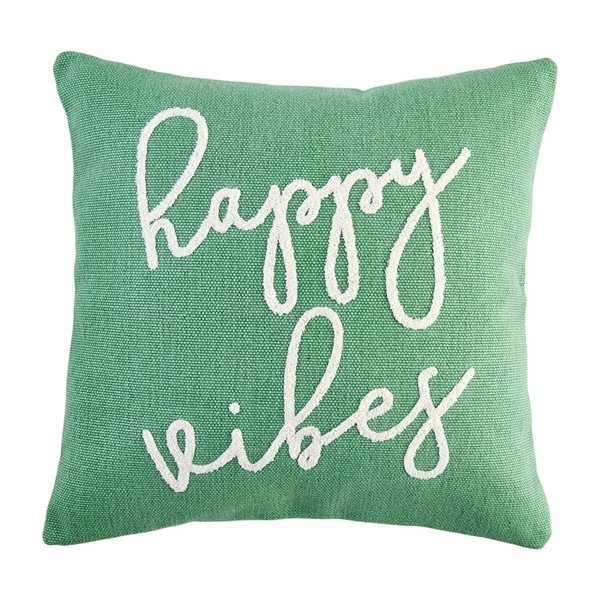 Mud Pie Color Sentiment Dhurrie Pillow, 22" x 22", Happy Vibes