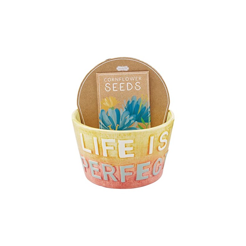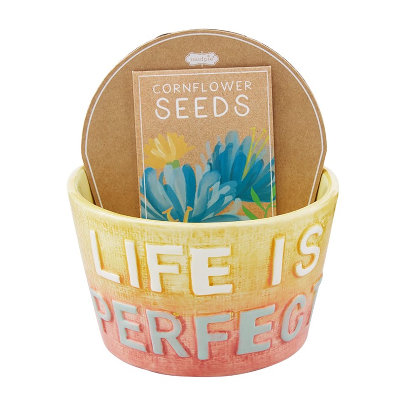 Mud Pie Colorful Planter Seed, Life, 3" x 3.65" Dia
