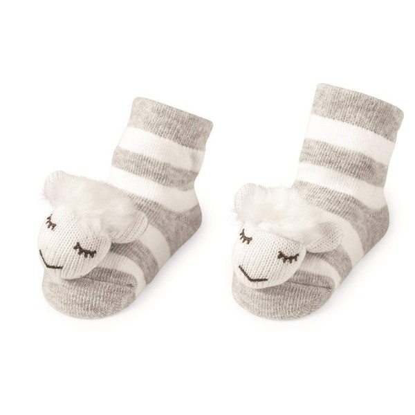 - Printed cotton hosiery socks feature plush knit rattles at toes.