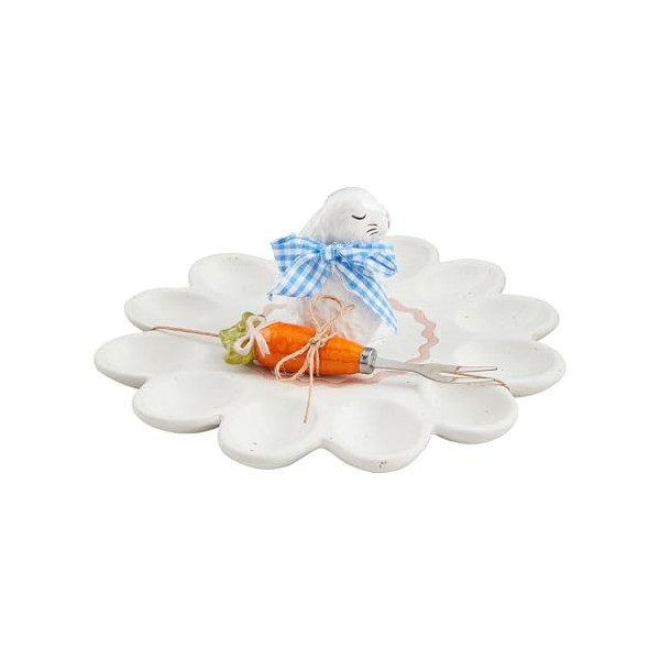 Mud Pie Bunny Deviled Egg Platter; platter 10" dia | bunny 3 1/2" | fork 5"