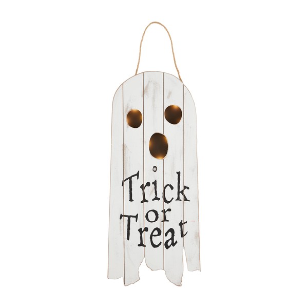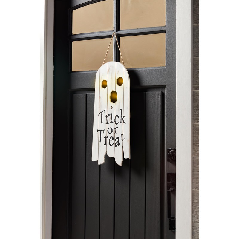 - The Ghost Wood LED Door Hanger is a spooky addition to your home decor