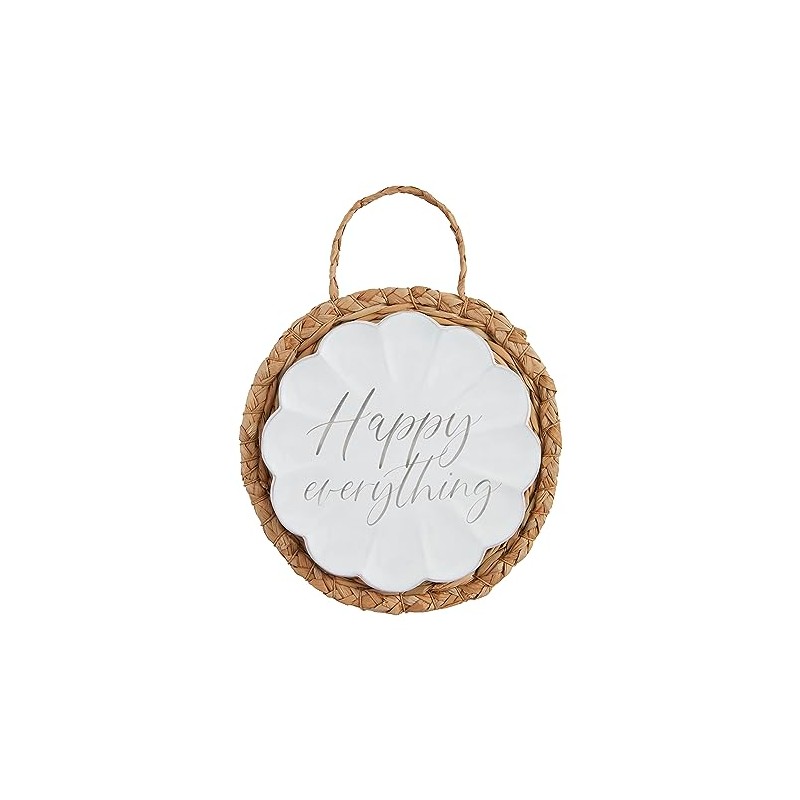 - Accompanied by a 9" woven seagrass trivet, this duo not only safeguards your surfaces but also adds a touch of natural charm to your table setting.