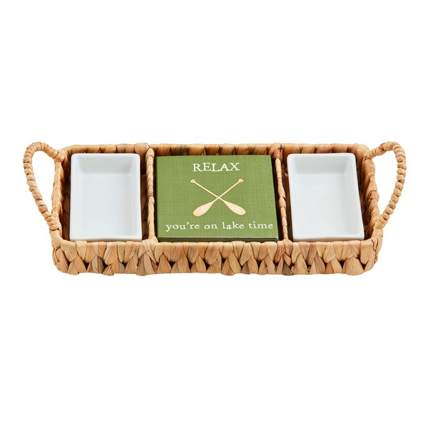 - Set your dinning your table with our Nyacinth Napkin Serving Set. This 4-piece set includes a water hyacinth serving basket that holds two removable stoneware dishes. This set come with a pack of 12 paper cocktail napkins.
