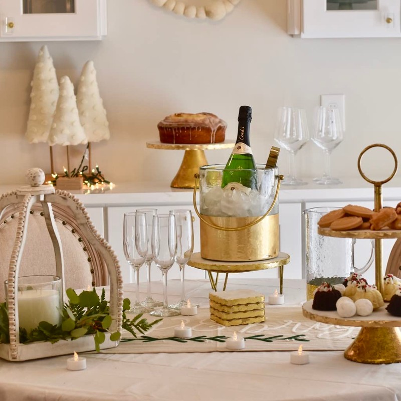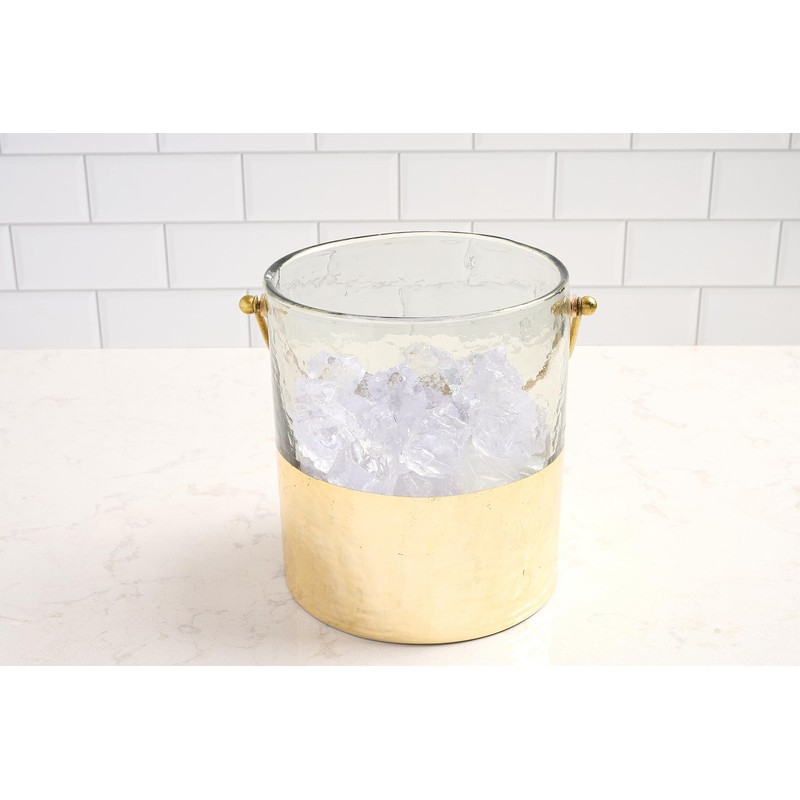 Mud Pie 8 x 7 dia 6 1/2" Ice Bucket and Tongs Set, Gold and Clear