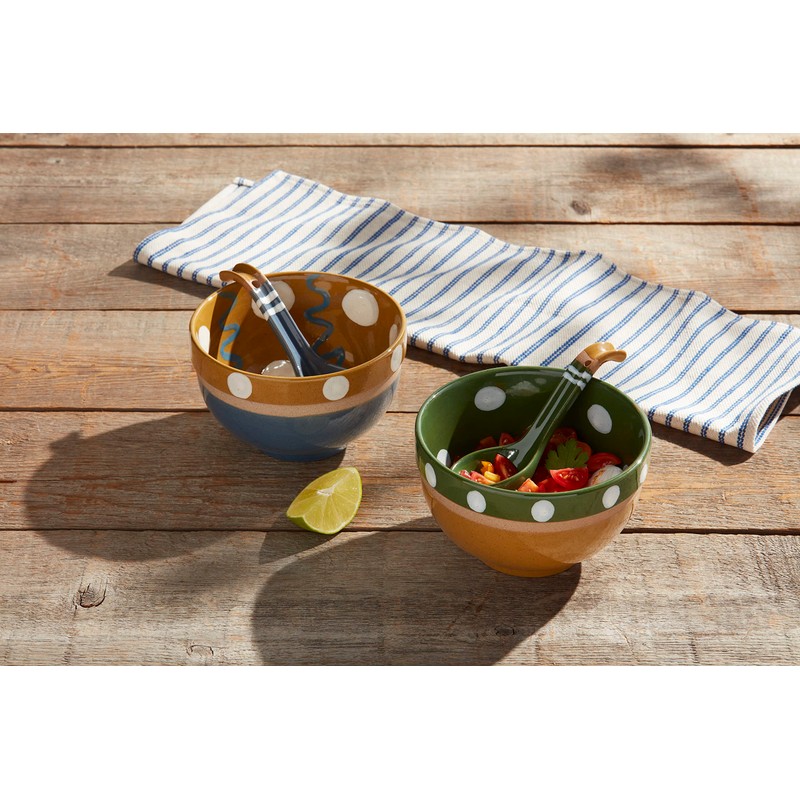 Mud Pie - Juego de salsa pintada, tazón de 3 1/2 pulgadas x 5 3/4 pulgadas de diámetro | cucharón de 5 1/2 pulgadas, azul