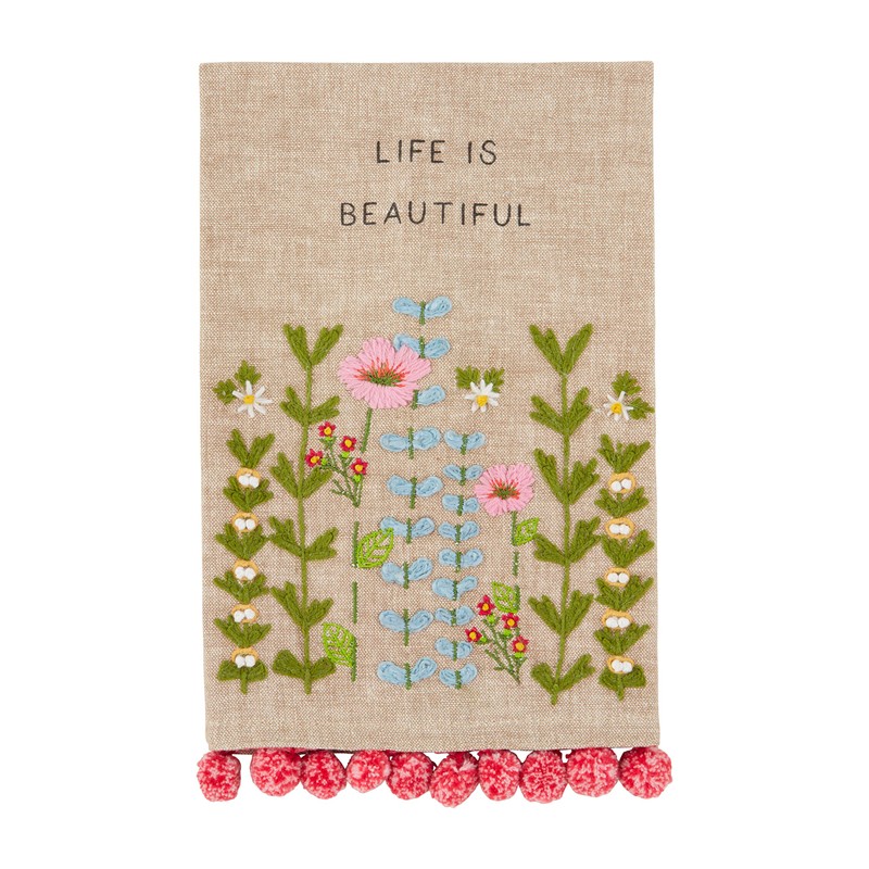 Mud Pie Life Embroidered Floral Towel, 21" x 14", Small, Lide