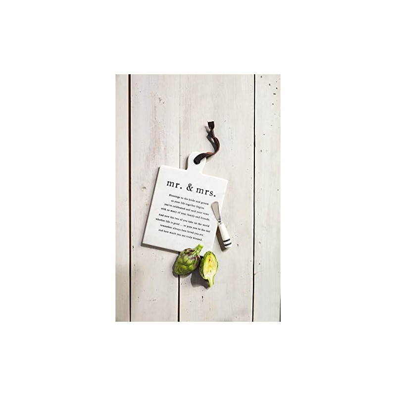 Mud Pie Mr. And Mrs. Wedding Marble Board Set, White, 12.5" x 8.5"