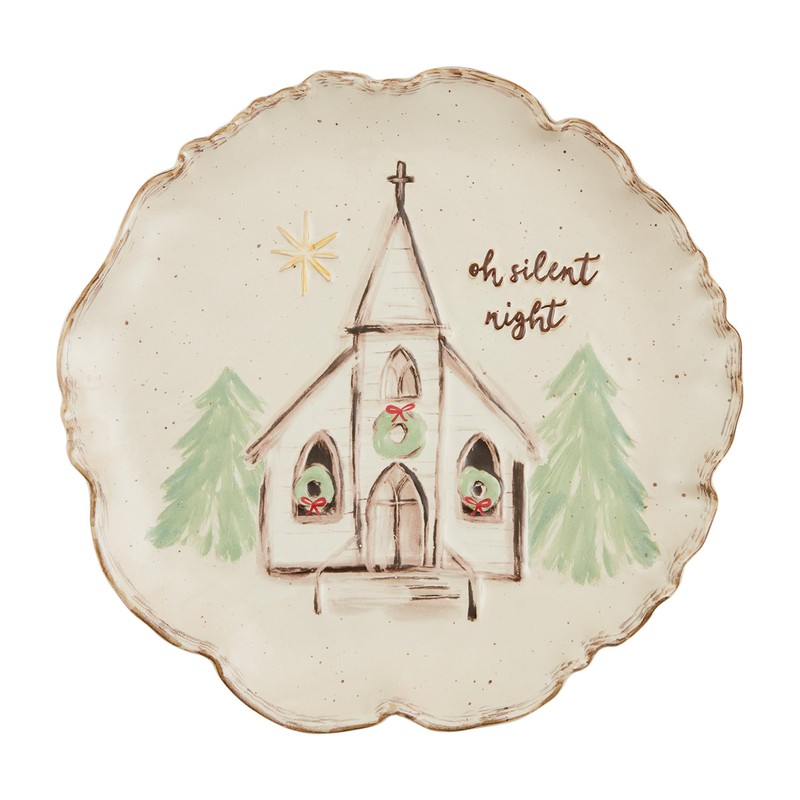 - The Oh Silent Night Church Platter is a stunning piece of stoneware that will elevate any dining table or display