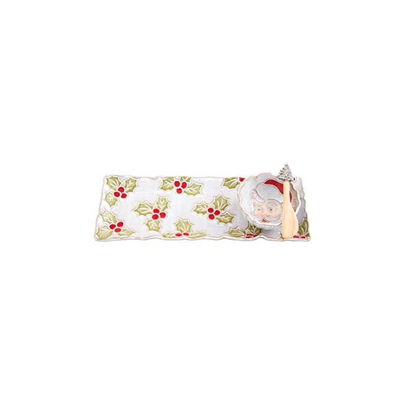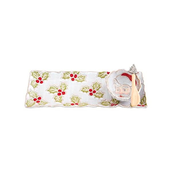 Mud Pie Santa Tidbit Set, tray 4 3/4" x 13", Green