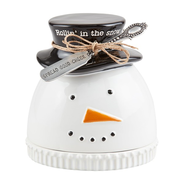 Mud Pie Snowman Cloche Spreader Set; cloche 6 1/2" x 5 1/2" dia | spreader 5"