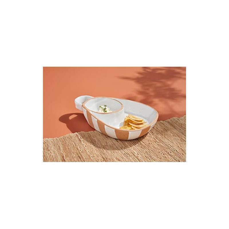 Mud Pie Terracotta Chip & Dip, 7" x 9 3/4", White