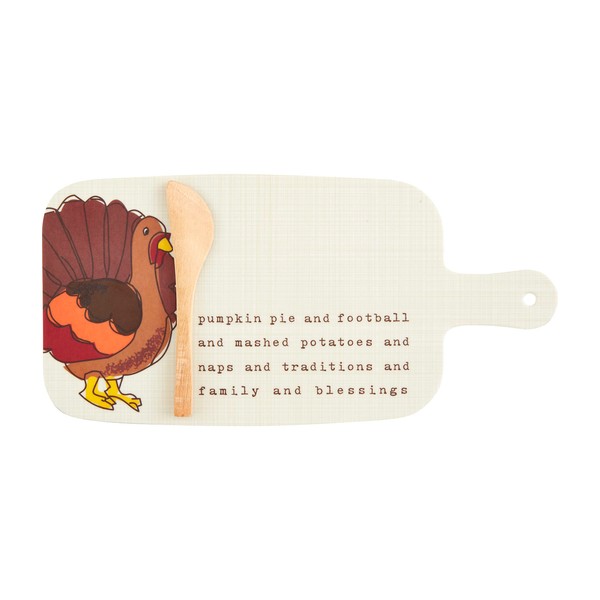 Mud Pie Thanksgiving Melamine Board Set, Tray 5 1/2" x 11 1/4" | Spreader 5 1/2", Cream