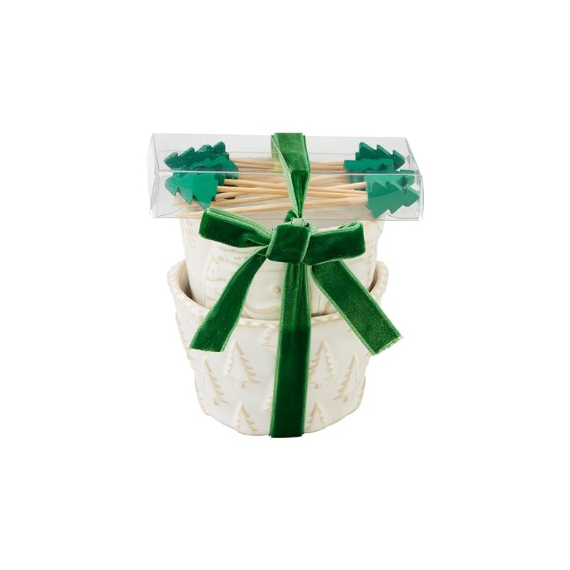 Mud Pie White Tree Xmas Tidbit Set, bowl 2" x 3" dia | toothpick 2 1/2"