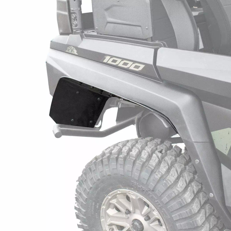 IMPORTANT FITMENT INFORMATION: If your RMAX4 is equipped with rock sliders it is possible that the rock sliders will continue into the wheel well area! Modification may be needed to install MudBusters.