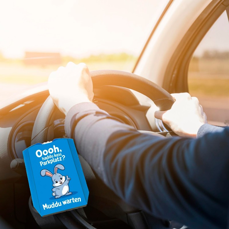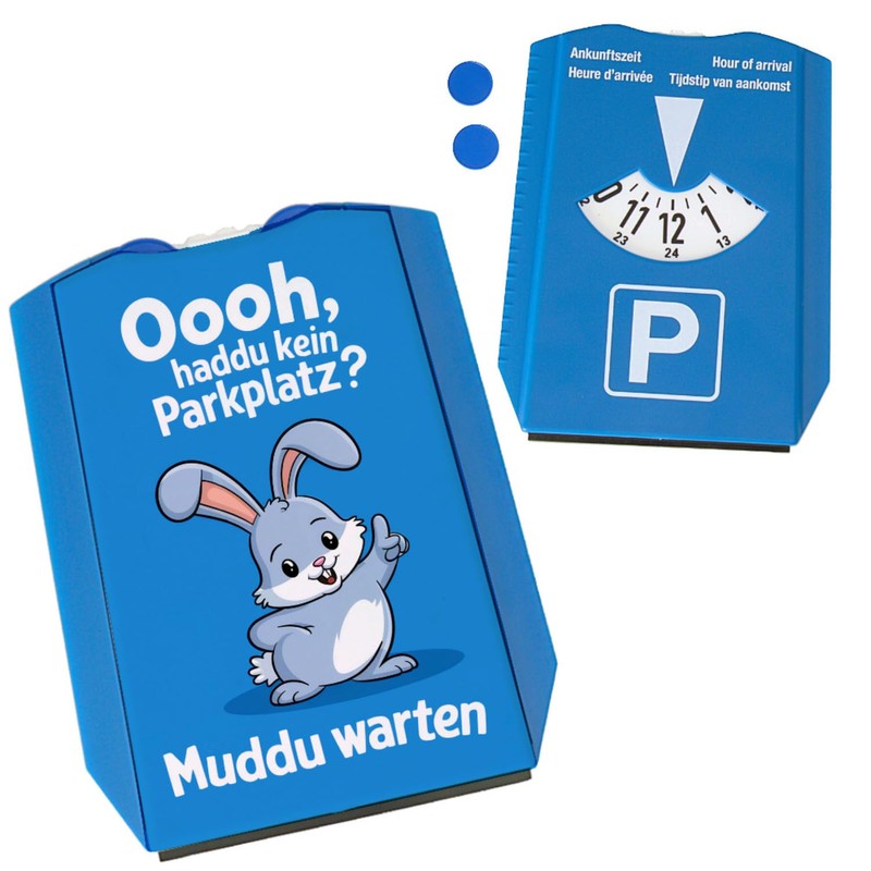 - Ooooh, haddu keine Parkplatz? Kein Problem! Diese humorvolle Parkscheibe mit einem grau-behaarten Cartoon-Hasen auf lebhaftem blauem Hintergrund bringt Spaß in den Parkplatzkampf. Der spielerische Hase mit seinen großen Ohren sorgt dafür, dass selbst das Warten auf einen Parkplatz ein lustiges Erlebnis wird!
