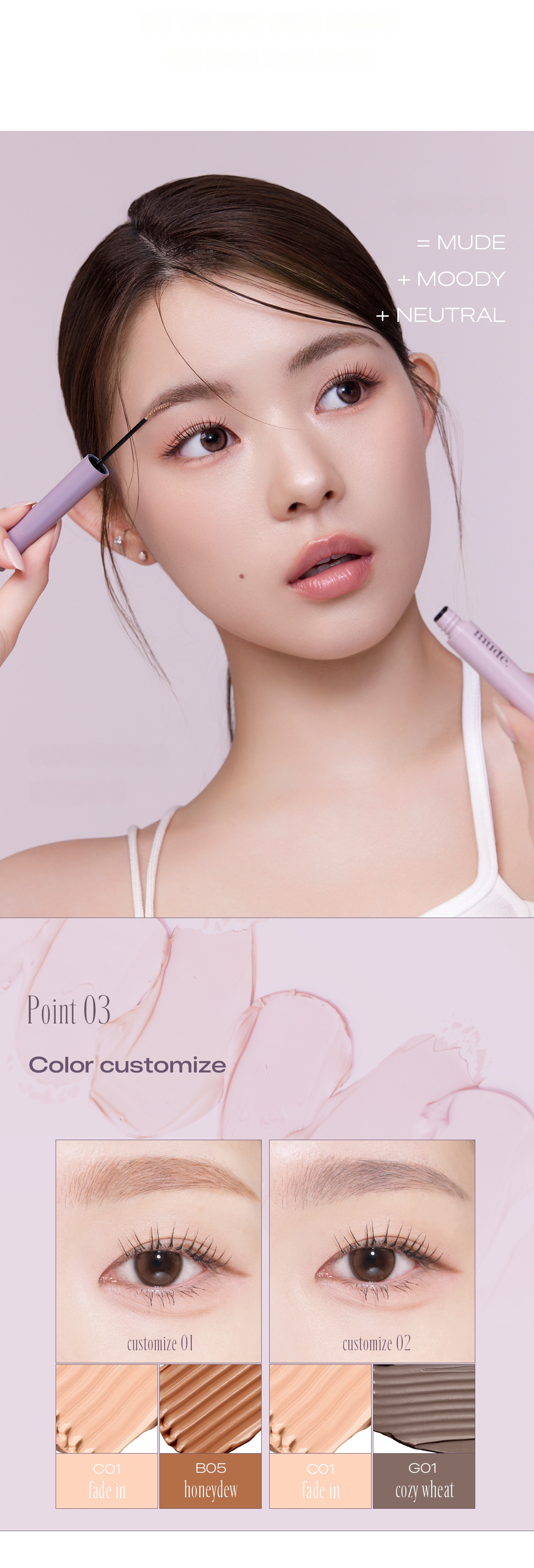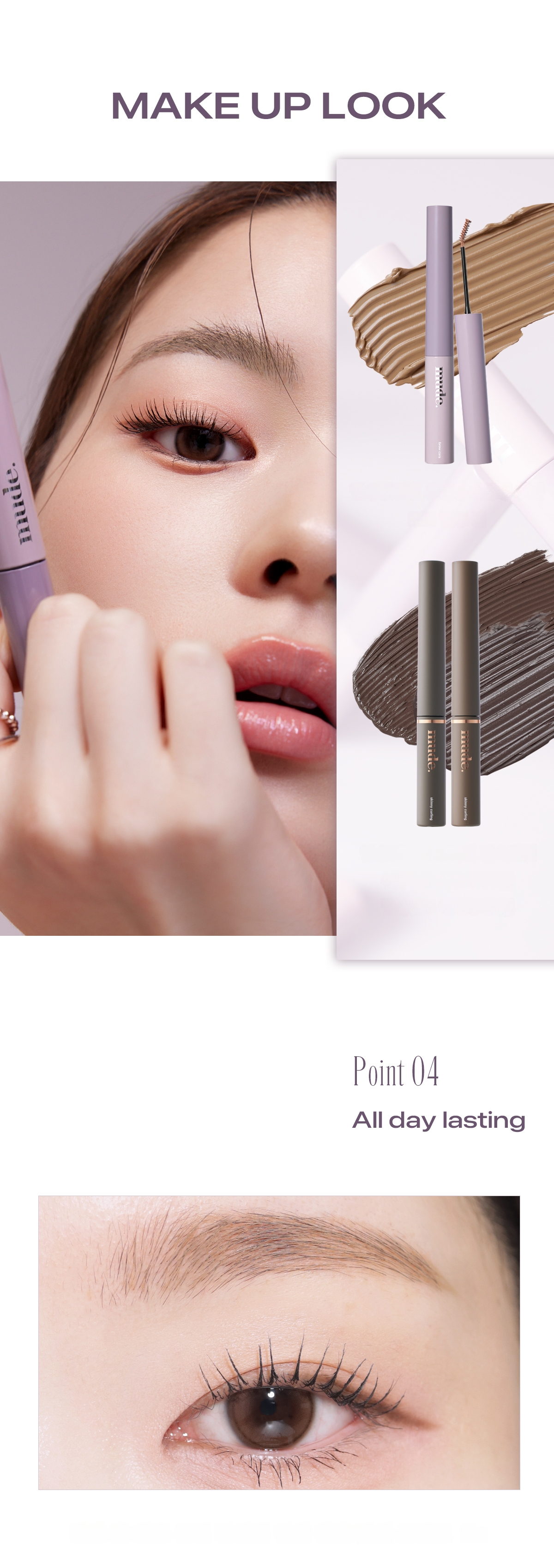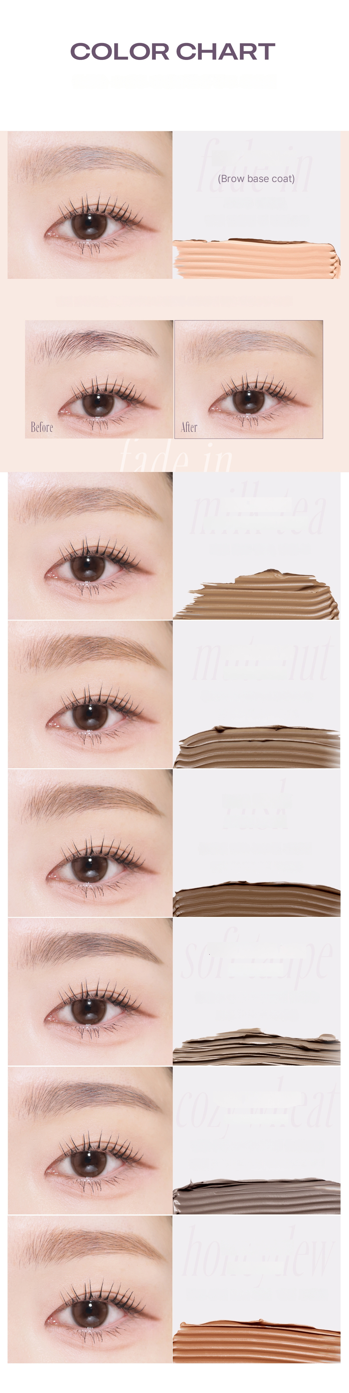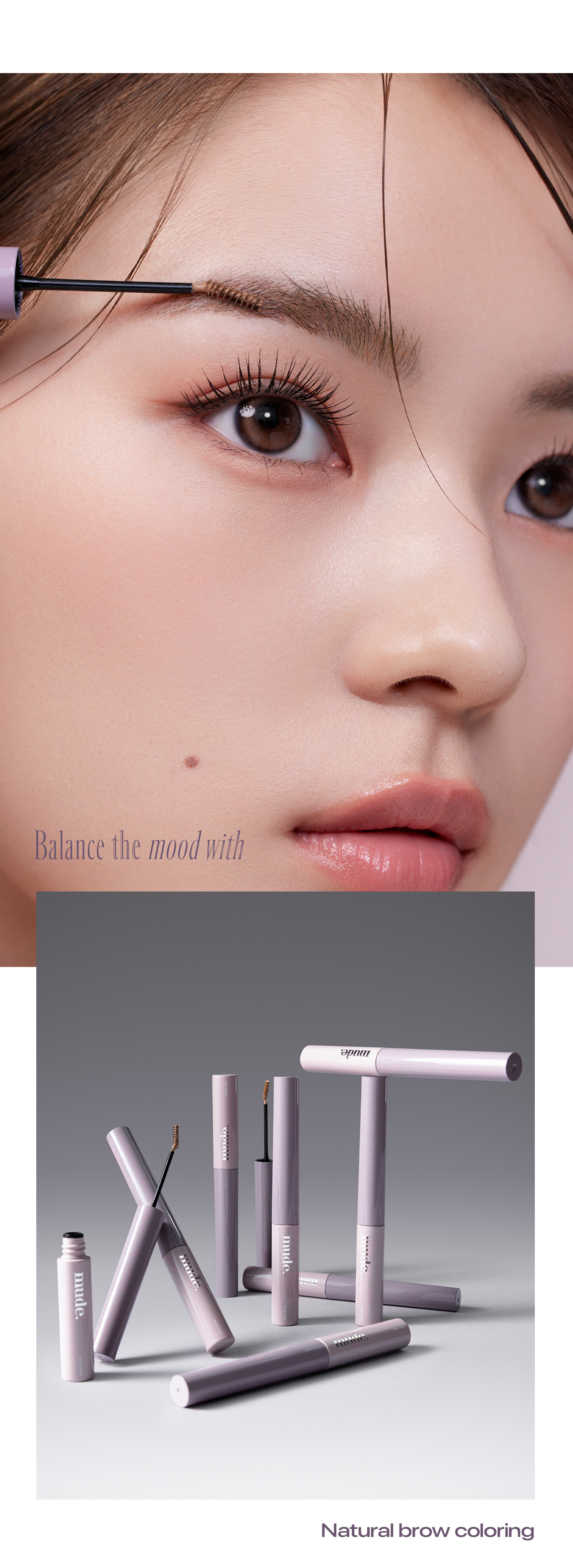 The brow cara and brow coloring for mood balance provide lightweight and soft coloring for pretty texture. Provides pretty and even application without skin irritation, and the delicate application of the ultra-mini slim skinny brush provides detailed brow texture and coloring. The mute and ash shades of mude. provide pretty and trendy brow shades complete with mood change.
