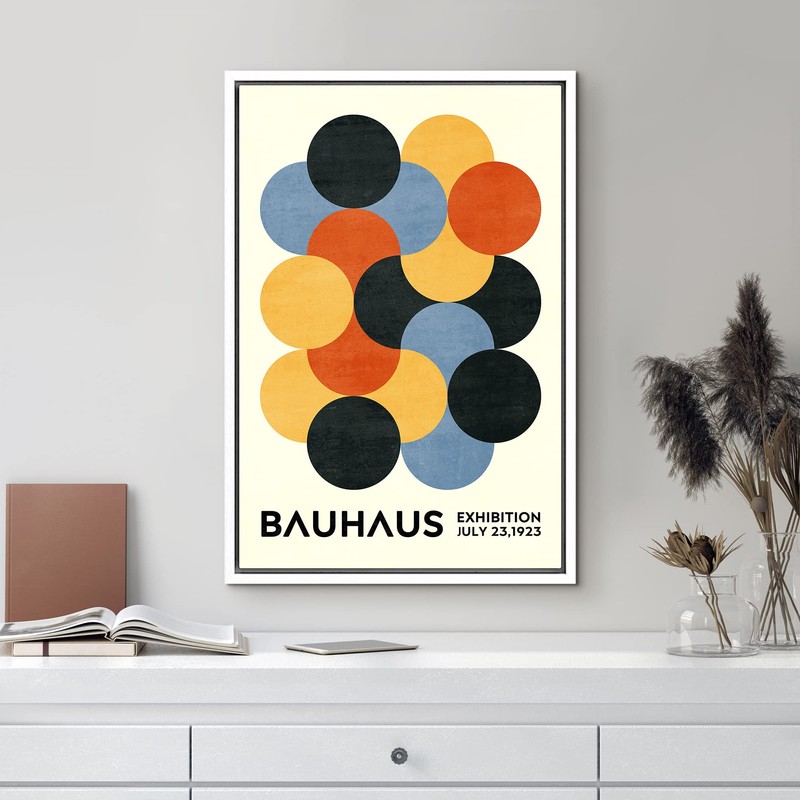 MUDECOR Framed Canvas Print Wall Art Geometric Colorful Circle Bauhaus Polygon Abstract Shapes Illustrations Fine Art Mid-Century Modern Multicolor for Living Room, Bedroom, Office - 24"x36" WHITE