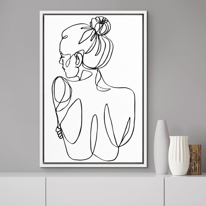MUDECOR Framed Canvas Print Wall Art Line Art Woman with Hair inBun People Shapes Illustrations Art Minimalist Cool Black and White for Living Room, Bedroom, Office - 24"x36" White