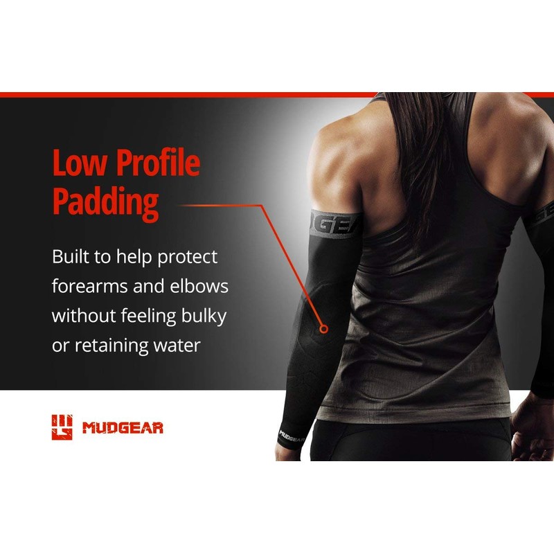 - Construcción resistente al barro: originalmente diseñado para carreras de obstáculos como Tough Mudder y Spartan Race. Estas mangas acolchadas para brazos pueden manejar cualquier cosa que les arrojes. La tela de mezcla de poliéster y el acolchado están diseñados para absorber los golpes y proteger al usuario de cortes y abrasiones de la suciedad, el barro y los obstáculos.