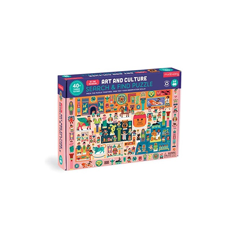 • 64-PIECE PUZZLE: The Art and Culture At the Museum Search & Find Puzzle from Mudpuppy is just the right level of challenge for children ages 4 through 7 and is a fun indoor activity for hours of puzzling fun.
