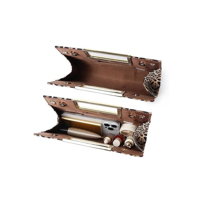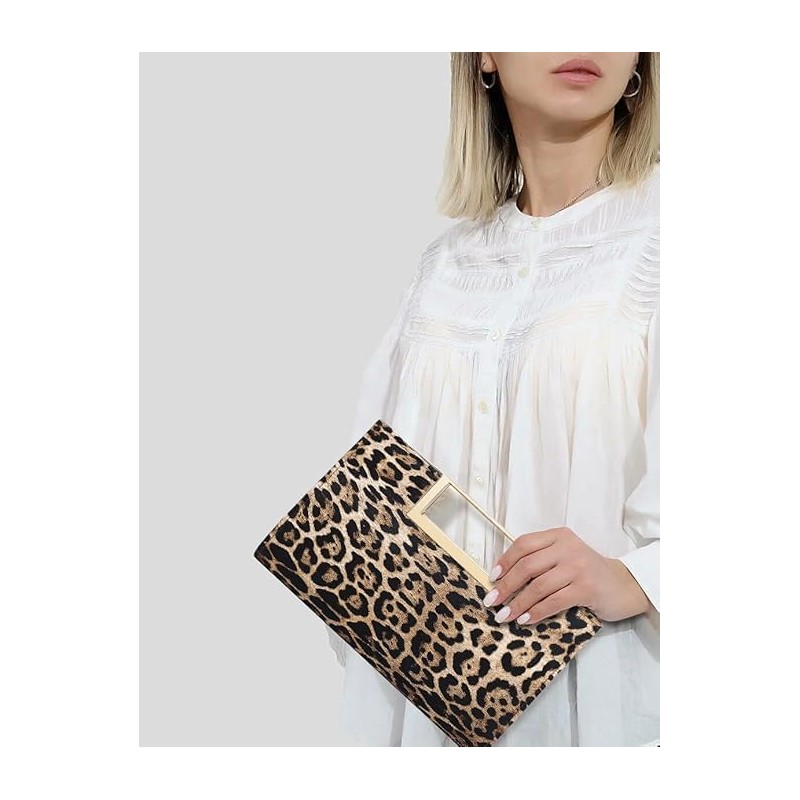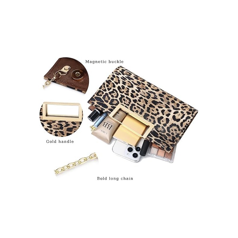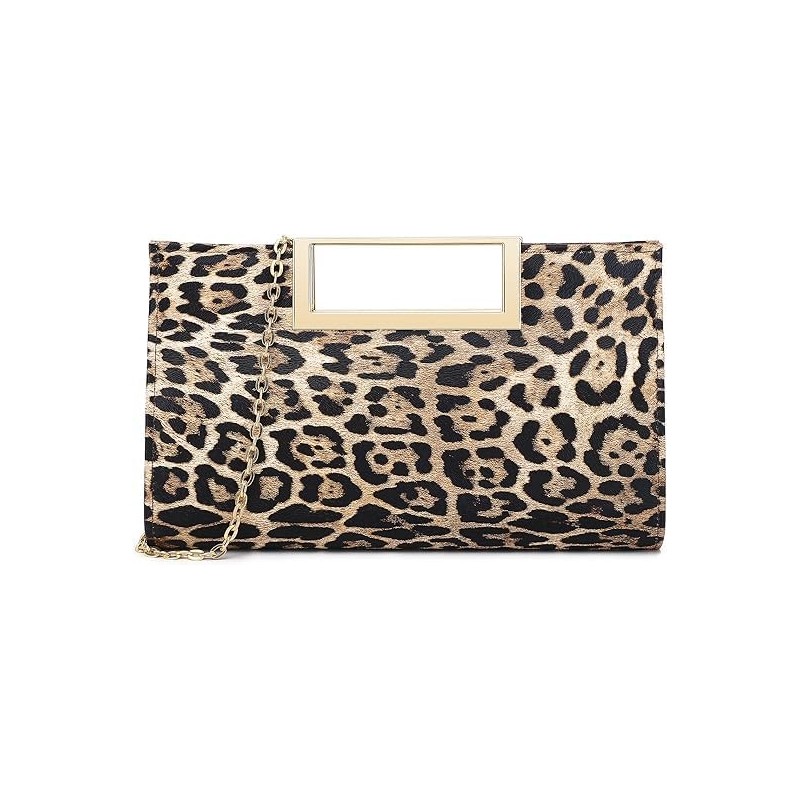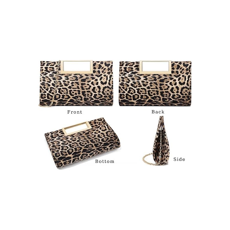 MUDUO Elegant Faux Leather Evening Handbag Crossbody Shoulder Bag with Detachable Strap Handbag for Wedding Party (3062-Leopard Print)
