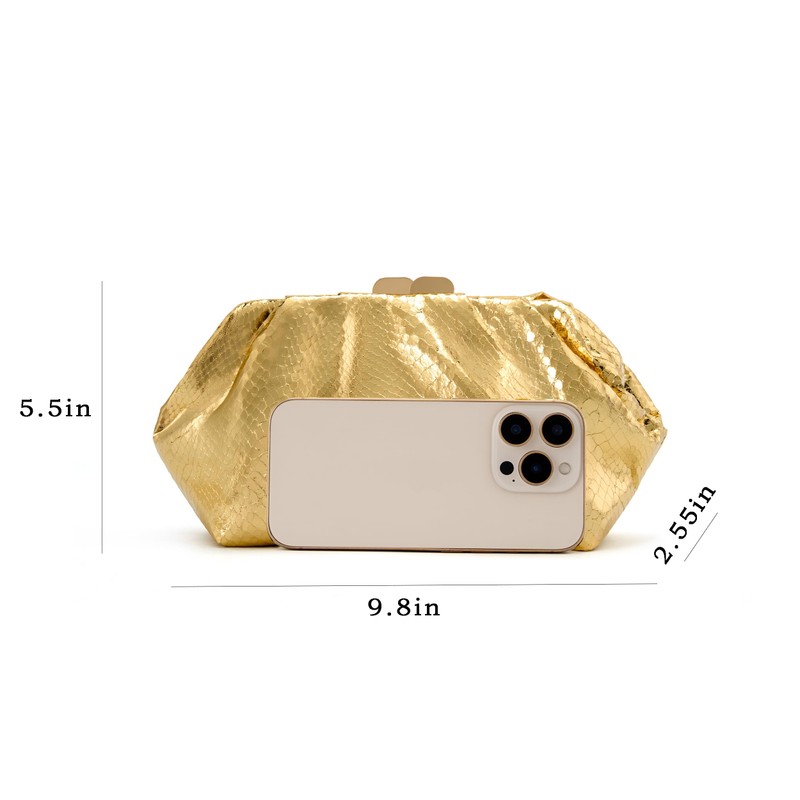 MUDUO Elegant Pleated Evening Bag Soft Vegan Leather Clutch Purse Dressy Formal Handbag for Weddings, Proms, Cocktail-Gemma (Snake Print Gold)