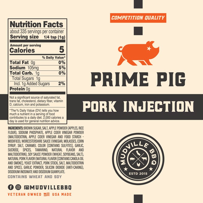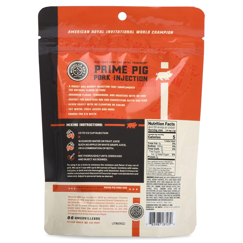 Mudville BBQ Prime Pig Pork Injection & Brine, World Champion BBQ Pitmaster Recipe, Enhances the Natural Flavor in Your Pulled Pork, Pork Butt & Ribs