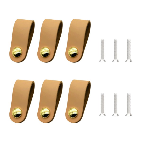 MUEEAD 6 Pieces Leather Furniture Pulls with 6 Screws, Drawer Door Knobs, Leather Cabinet Pulls, Dressing Table Door Knobs, Kitchen Door Knobs, Leather Bag Handles