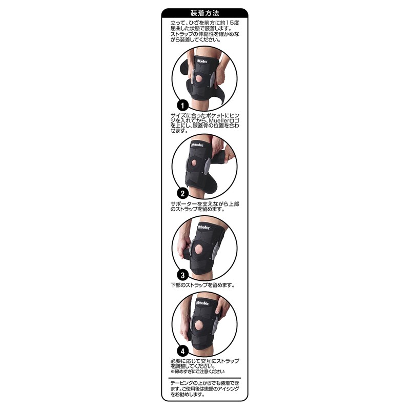 - クリスクロスストラップ:ひざ前方上下に配置、伸縮力が密着度を高める構造